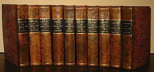 8vo (cm. 18), 10 Voll. ciascuno di circa 480 pp. con num.se ill.ni xilografiche n.t. Opera completa. Legature coeve in mz. pelle con fili e titoli oro su tassello al ds. Ottimo stato di conservazione.