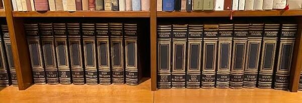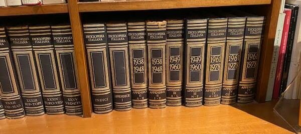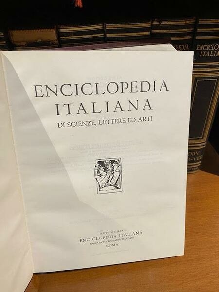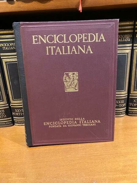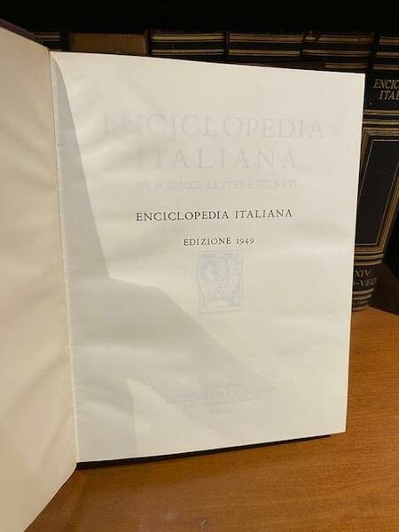 Raccolta di 44 volumi in buone condizioni. Comprende i XXXV volumi dell'enciclopedia italiana, l'Indice e le appendici da I a IV che aggiornano l'enciclopedia fino all'anno 1978. Disponibile una copia dell' appendice I. Copertine rigide scure con incisioni dorate su costa e copertina. Alcune coste presentano danni causati dal tempo. Pagine perfettamente conservate con numerose illustrazioni.