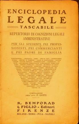 Enciclopedia Legale Tascabile. Repertorio di cognizioni legale amministrative.