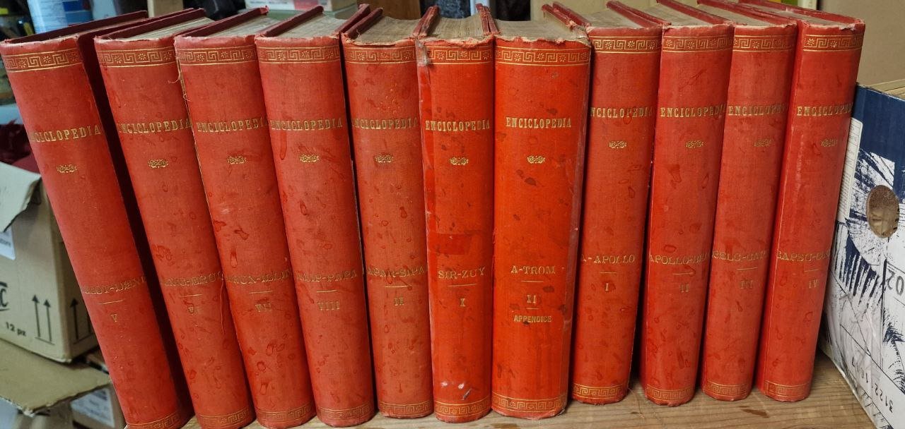ENCICLOPEDIA CON BELLISSIME ILLUSTRAZIONI - 11 VOLUMI MACCHIE ALLA LEGATURA SEGNI E TRACCE D'USO ROMAEDOARDO PERINO, Editore1886 1893ENCICLOPEDIAPOPOLAREILLUSTRATADIRETTADAL PROFESSORE FRANCESCO SABATINIStoria, Geografia, Cronologia, Antichit?, Scienze occulte,Blasone, Ilnvenzioni e scoperte, Linguistica, Storia letteraria, Poesia, Matematica, Fisica,Chimica, Meccanica, Medicina, Anatomia, Giurisprudenza, Astronomia,Meteorologia, Geologia, Storia naturale, Igiene, Filosofia, Religione, Scienza Militare,Estetica, Pittura, Scultura, Architettura, Musica,Agricoltura, Commercio, Economia pubblica e domestica,Industria, ecc. ecc.COD GR01 VIN - SIT