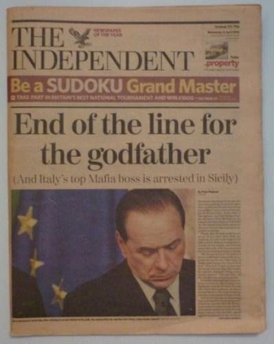 - SX BERLUSCONI ATTACCO MEDIATICO POLITICA ITALIANA SCANDALI FORZA, ITALIA PARTITO COMUNISTI DESTRA SOROS MAFIA THE INDEPENDENT -, AA. VV. END OF LINE FOR GODFATHER Politica, Giornalismo