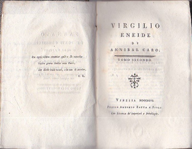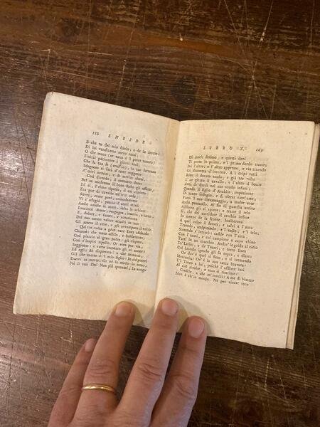 2 voll. in-8° (172x112mm), pp. 337, (3); 309, (3); bella brossura decorata originale con titolo a stampa su tassello cartaceo ai dorsi. Freschissimo esemplare in barbe e a fogli chiusi. Tomi XVI-XVII del 'Parnaso de'Poeti Classici d'ogni nazione'. Al primo vol. un'avvertenza di Andrea Rubbi, curatore della collana.