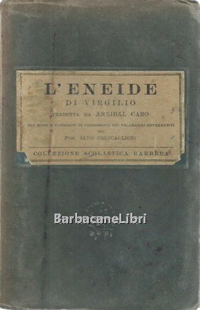 Stato di conservazione: ACCETTABILE, rottura cerniera ant., legatura allentata, fogli volanti, firma di appartenenza al frontespizio, qualche segno e annotazione a matita. Collana: Collezione scolastica. Traduzione di Annibal Caro. Con note e commenti in conformità dei programmi governativi del Prof. Aldo Bruscaglioni