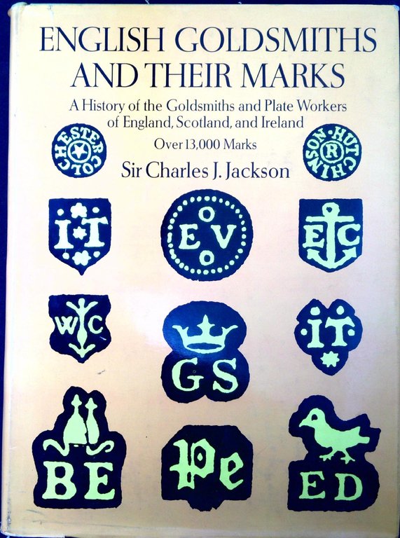 Jackson, Charles James English goldsmiths and their marks : a history of the goldsmiths and plate workers of England, Scotland, and Ireland. New York, Dover 1964, XVI, 747 p. : tav., facs. ; 28 cm . (45059)