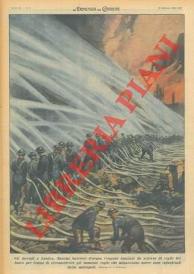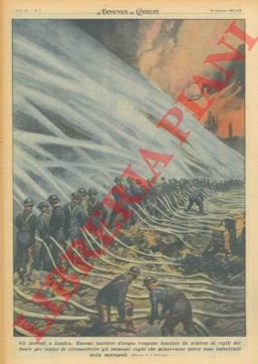 Enormi barriere d'acqua vengono lanciate da schiere di vigili del fuoco pre tentare di circoscrivere gli immensi roghi che minacciano intere zone industriali di Londra.