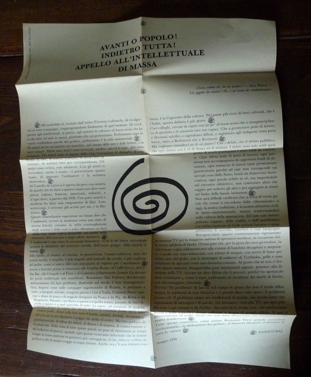 Enrico Baj,CHE COS'È LA 'PATAFISICA?Edizioni L'"Affranchi", Salorino, Svizzera 1994,brossura, 18x12 cm., pp.101,allegati un "CALENDRIER PATAPHYSIQUE"e un manifesto ripiegato 43x33 cm.,COLLANA "AL FUOCO!",peso: g.350cod.9979CONDIZIONI DEL LIBRO: ottime,piega ad un angolo della copertina