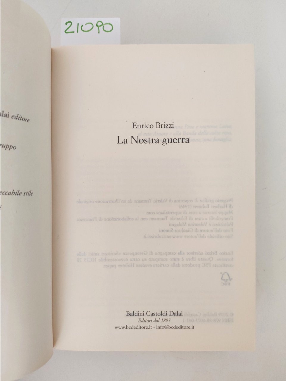 Enrico Brizzi La nostra guerra romanzo Baldini e Castoldi 2009