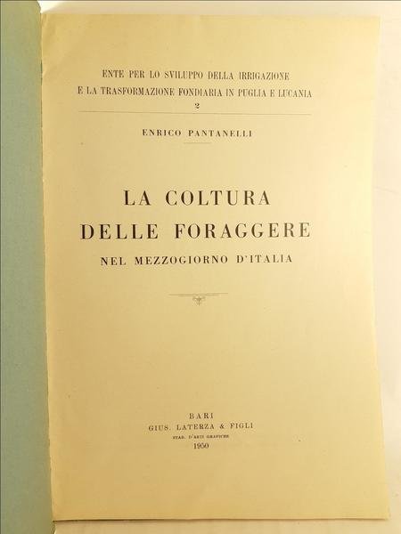Enrico Pantanelli Coltura delle foraggere nel mezzogiorno d'Italia 1950 Laterza