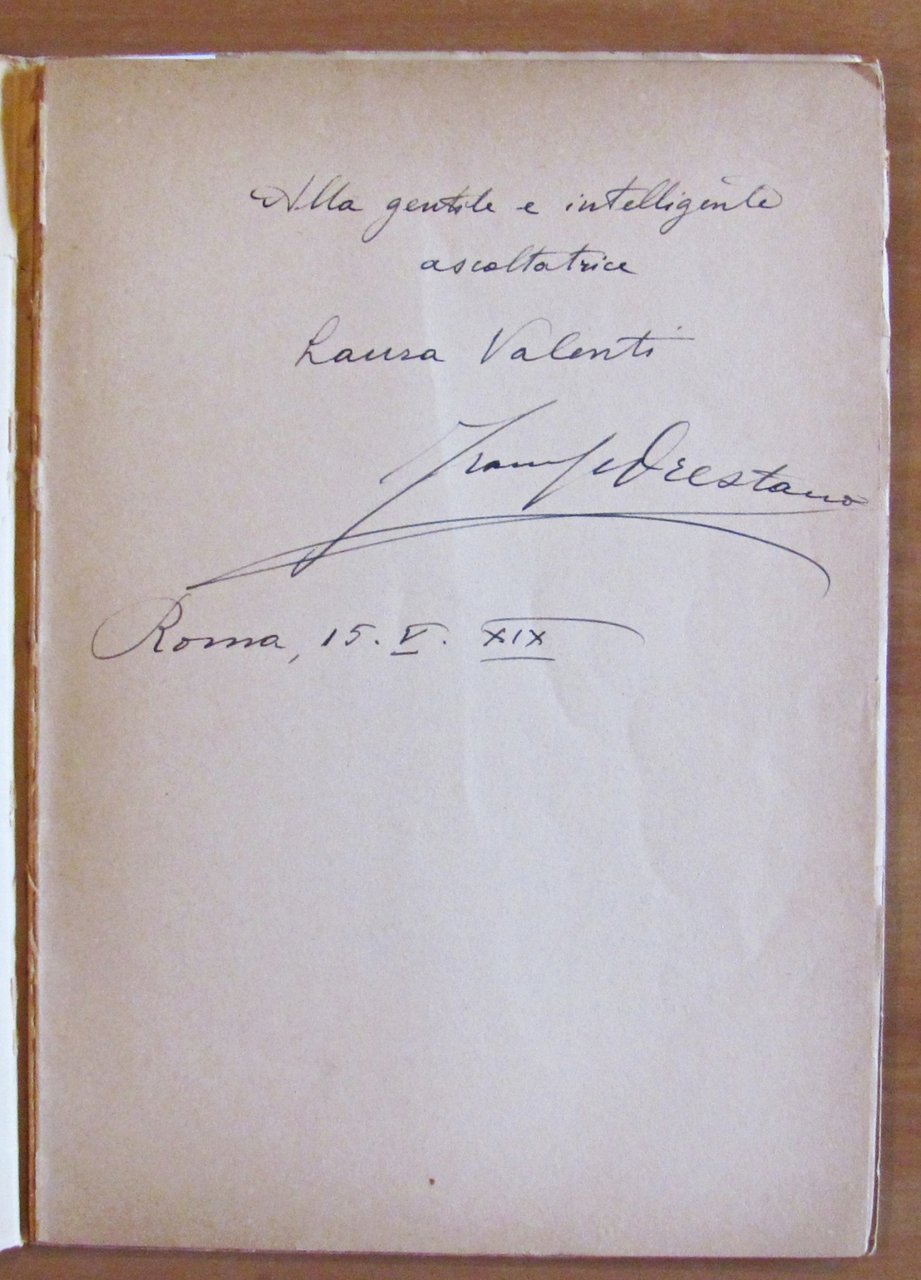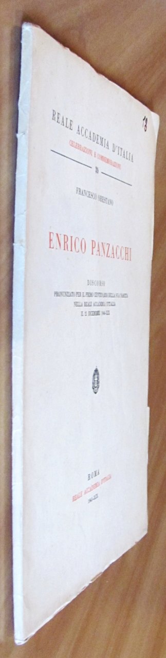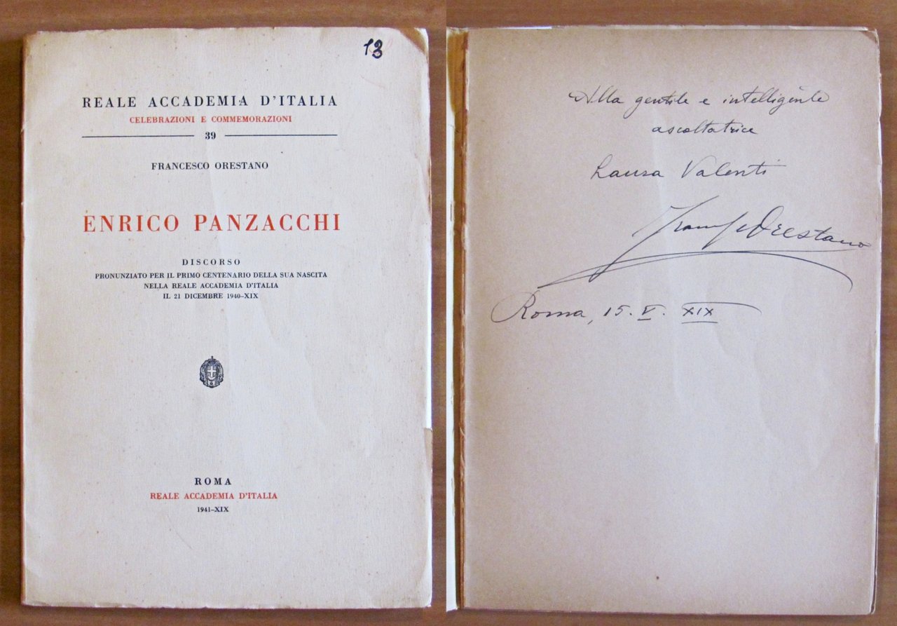 Discorso pronunziato per il primo centenario della sua nascita nella Reale Accademia d'Italia il 21 Dicembre 1940. Foto in b/n in antiporta di Panzacchi. Ed. Reale Accademia d'Italia - Roma, 1941. Brossura editoriale con dedica autografa dell'autore al risguardo. 18x25,5; pp.34. Buonissimo stato 34, Molto buono (Very Good)