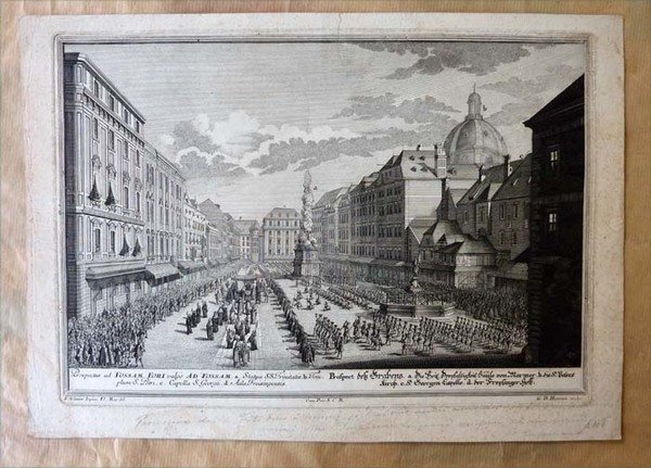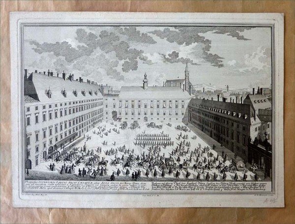 Chacune des planches est à toute marge. Aucune n'est tachée et le tirage excellent. Une des planches a une fente de quelques centimètres soigneusement consolidée, sans doute à l'époque; les dimensions varient de 348x258 mm pour la plus petite à 390x304 mm pour la plus grande. Salomon Kleiner (1700-1761) possédait un important atelier de gravure à Augsbourg. Bel ensemble. Voir les photographies.
