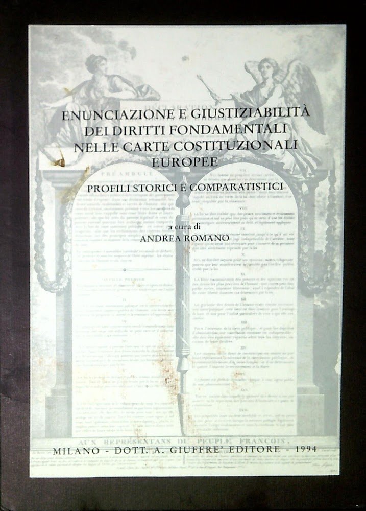Romano, A. Enunciazione e giustiziabilità dei diritti fondamentali nelle carte costituzionali europee. Profili storici e comparatistici. Atti del Convegno (Messina, 1993). Milano, Giuffrè 1994, 23 290 (62531)