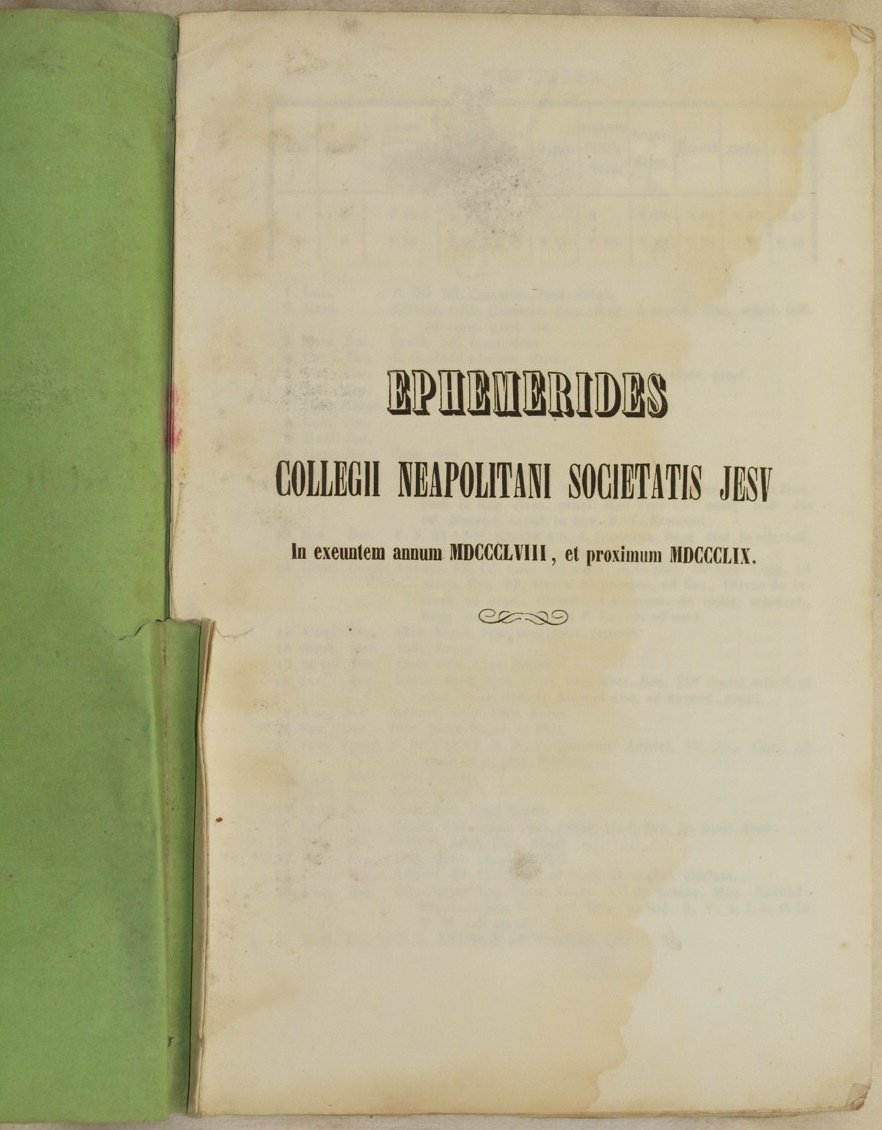 EPHEMERIDES COLLEGII NEAPOLITANI SOCIETATIS JESU IN EXEUNTEM ANNUM MDCCCLVIII ET PROXIMUM MDCCCLIX
