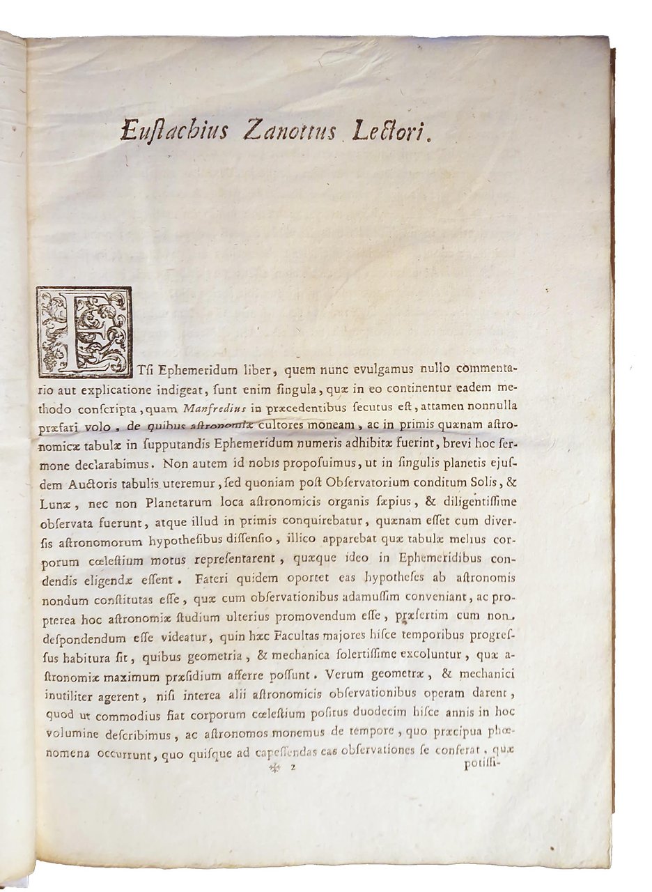 Ephemerides motuum coelestium, ex anno MDCCLI in annum MDCCLXII ad meridianum Bononiae supputatae auctoribus Eustachio Zanotto […] et sociis ad usum Instituti.
