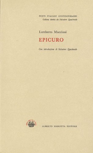 Epicuro. , Marotta 1965 italiano, Edizione Alberto Marotta - Poeti Italiani Contemporanei n. 1 - gennaio 1965 - in COPERTINA FLESSIBILE con alette informative rivestita di acetato - all'interno del suo CARTONE EDITORIALE MORBIDO. CARTONE ABBASTANZA IMBRUNITO FATTORE TEMPO IN PARTICOLARE LUNGO I BORDI E CON QUALCHE USURA IN PARTICOLARE SUGLI SPIGOLI. ACETATO INGIALLITO E CON QUALCHE PICCOLO AMMANCO SU SPIGOLI DORSO. COPERTINA FLESSIBILE IN BUONISSIME CONDIZIONI. TRACCE DI ETICHETTA STACCATA DALL'INTERNO COPERTINA ANTERIORE. Pagine all'interno imbrunite fattore tempo in particolare lungo i margini ma in buonissime condizioni. Disponibilità immediata e spedizione con corriere tracciata.