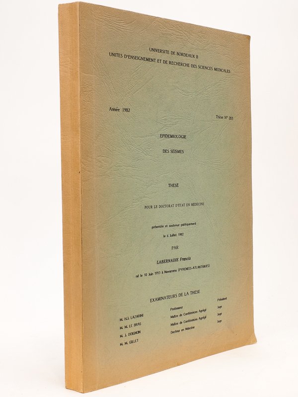 Epidémiologie des Séismes. Thèse pour le Doctorat d'Etat en Médecine, présentée et soutenue publiquement le 6 juillet 1982, Université de Bordeaux II
