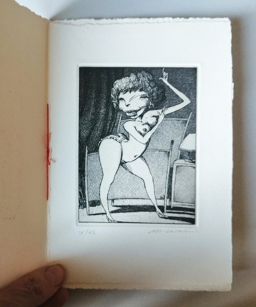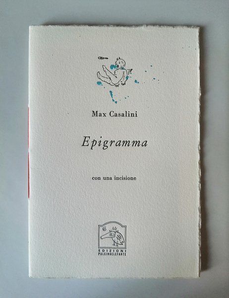 formato 20X13,5. Plaquette con velina editoriale. Pagine 8. Carta uso mano. Con una incisione di Max Casalini in 40 esemplari firmati. Questo Pulcinoelefane e uno dei editi per la Mostra GRAN CRU alla Galleria l Affiche di Milano. Catalogo di Silvio Zamorani Editore