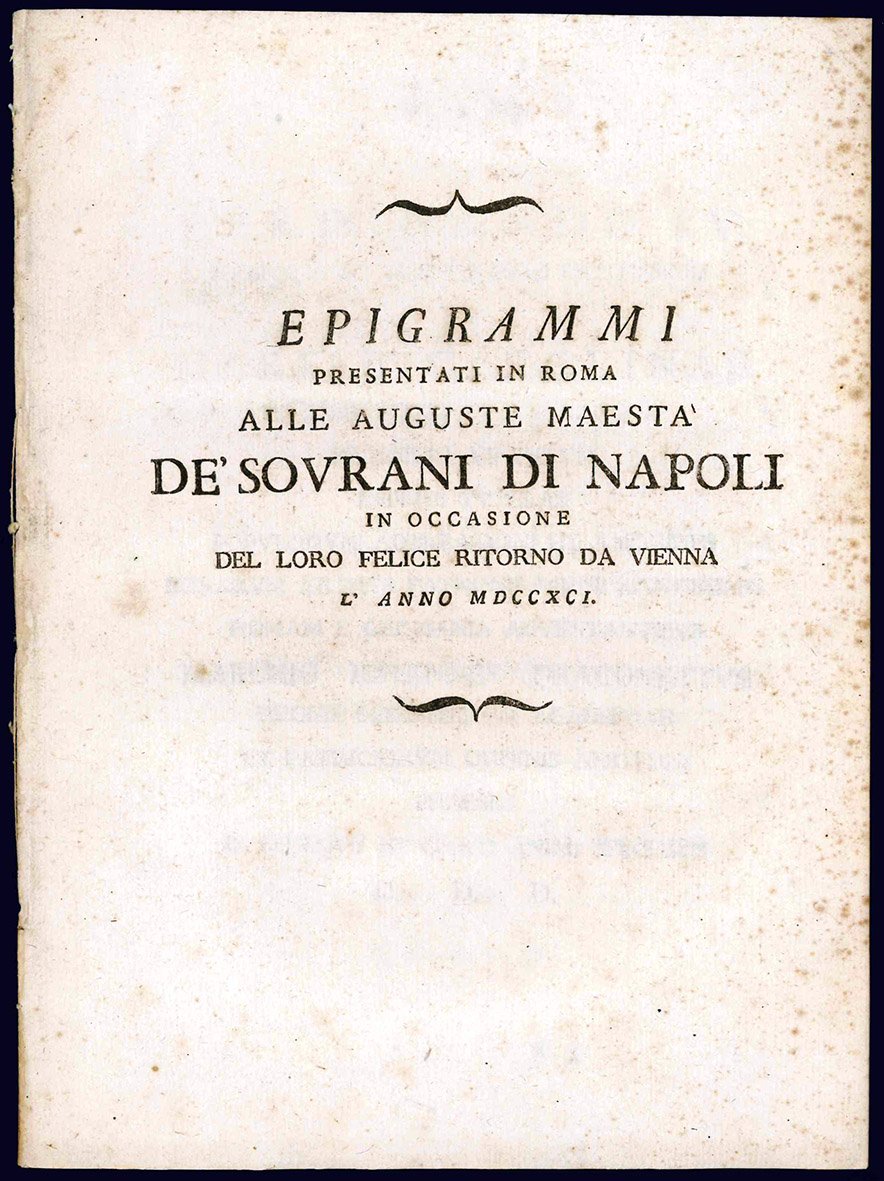 Epigrammi presentati in Roma alle auguste maestà de' sovrani di Napoli in occasione del loro felice ritorno da Vienna l'anno MDCCXCI.