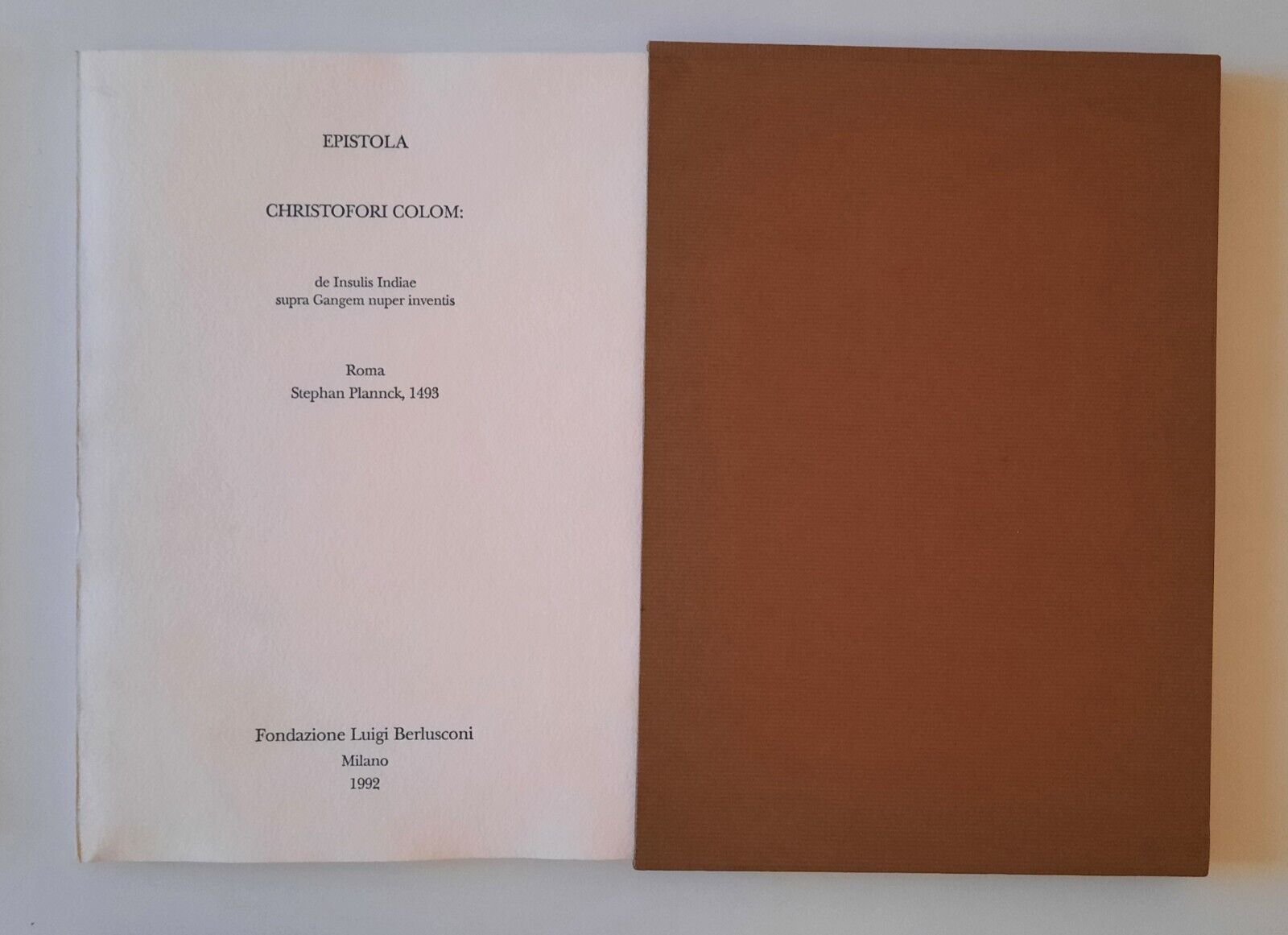 EPISTOLA CHRISTOFORI COLOM FOND. LUIGI BERLUSCONI 1992