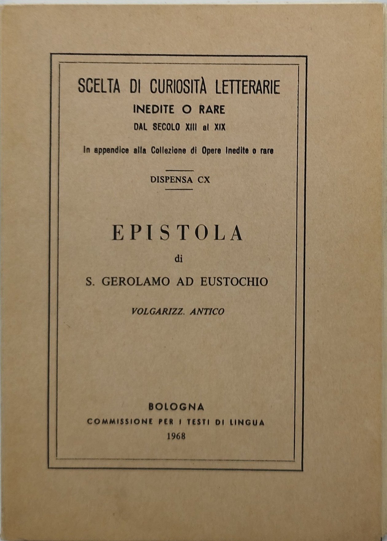 -- epistola di s gerolamo ad eustochio volgarizz. antico. , commissioni per i testi di lingua 1968 italiano, 211 °brossura