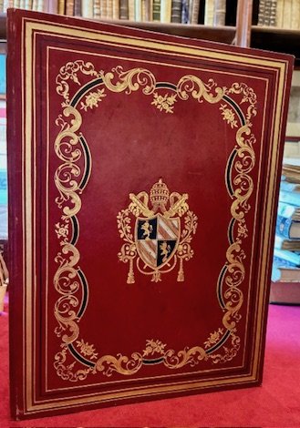 4to (cm. 28,5), 12 pp. con stemma vescovile al frontespizio. Bella legatura in pelle rossa alle armi di Pio IX. Ricche cornici impresse in nero ed oro ai due piatti con al centro lo stemma papale. Ottimo stato di conservazione. Lettera pastorale indirizzata al clero e al popolo della città di Lacedonia in Irpinia.