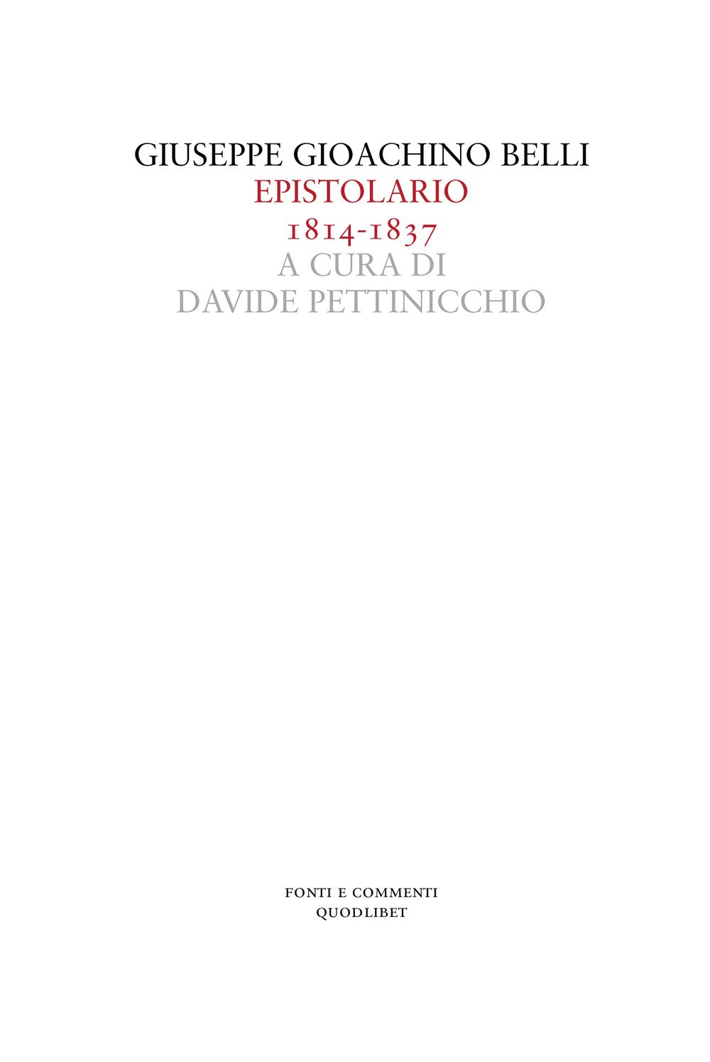 Il libro raccoglie tutte le lettere, molte delle quali inedite, scritte da Giuseppe Gioachino Belli nella prima parte della sua vita (1814-1837), e le accompagna con un ricco apparato di notizie critiche e storico-biografiche. Questi documenti privati ci permettono di ripercorrere il vivace romanzo di formazione d’un giovane impiegato pontificio che compie il suo apprendistato culturale nella variegata realtà dell’Italia primo-ottocentesca, tra esperienze d’accademia, viaggi, relazioni intellettuali e mondane. Da questi molteplici incontri con libri e persone nasce la stagione artistica più fervida di Belli, che negli anni Trenta affianca alla scrittura della maggioranza dei sonetti romaneschi una vivace attività giornalistica e una consistente produzione poetica italiana, avventurandosi in una libera ricerca espressiva drammaticamente ridimensionata nel 1837, dopo la morte della moglie Maria.