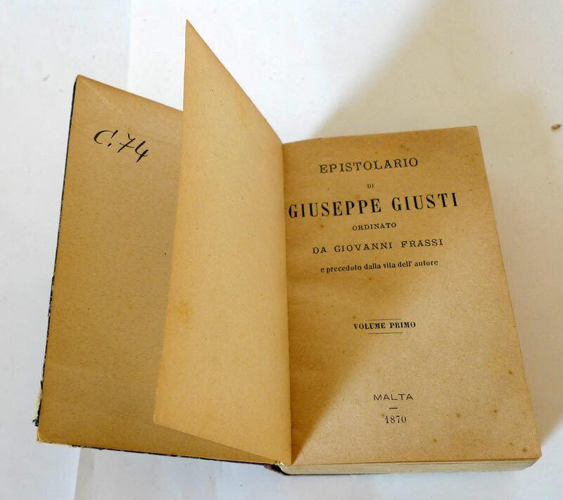 EPISTOLARIO DI GIUSEPPE GIUSTI ORDINATO DA GIOVANNI FRASSI,1870 Malta[poesia