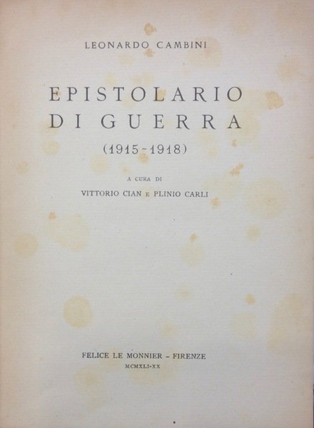 A cura di Vittorio Cian e Plinio Carli. Volume in bella brossura, pp 203, con illustrazioni fotografiche bn. Piccola parte mancante al margine superiore del dorso. Copia con firma dell'autore, esemplare numerato n.1500, con fascetta editoriale inclusa