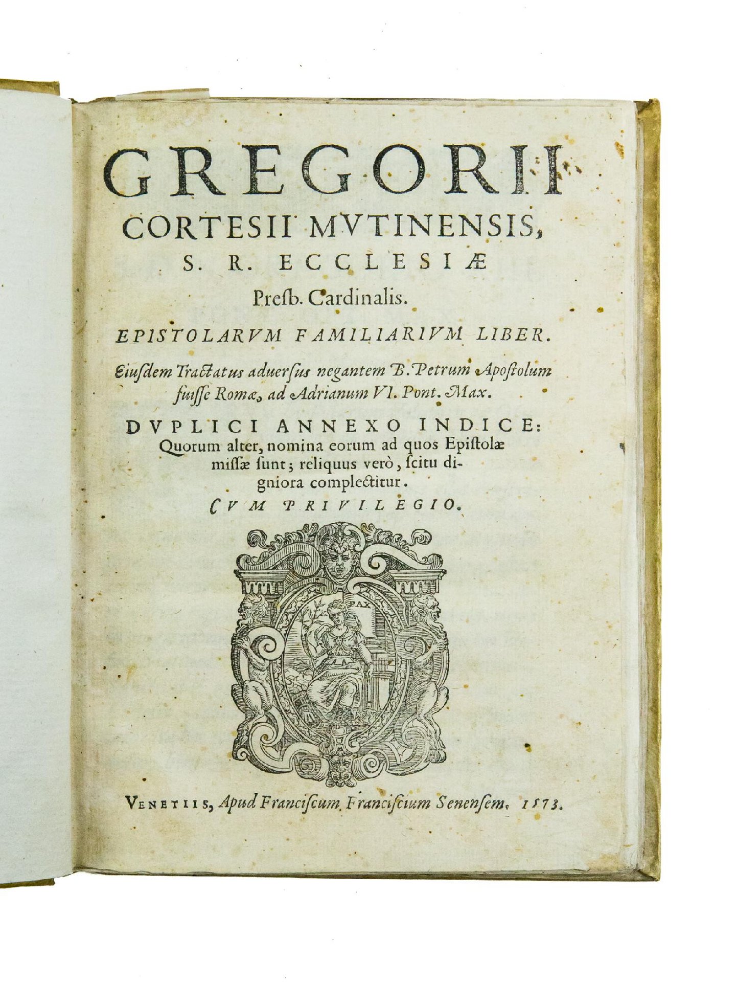 Adams, C-2709; Edit 16, CNCE 13577; Index Aureliensis, 145.437; F.C. Cesareo, Humanism and Catholic Reform. The Life and Work of Gregorio Cortese (1483-1548), (New York & Bern, 1990), p. 183; G. Gueudet, L'art de la letter humaniste, F. Wild, ed., (Paris, 2004), p. 653.