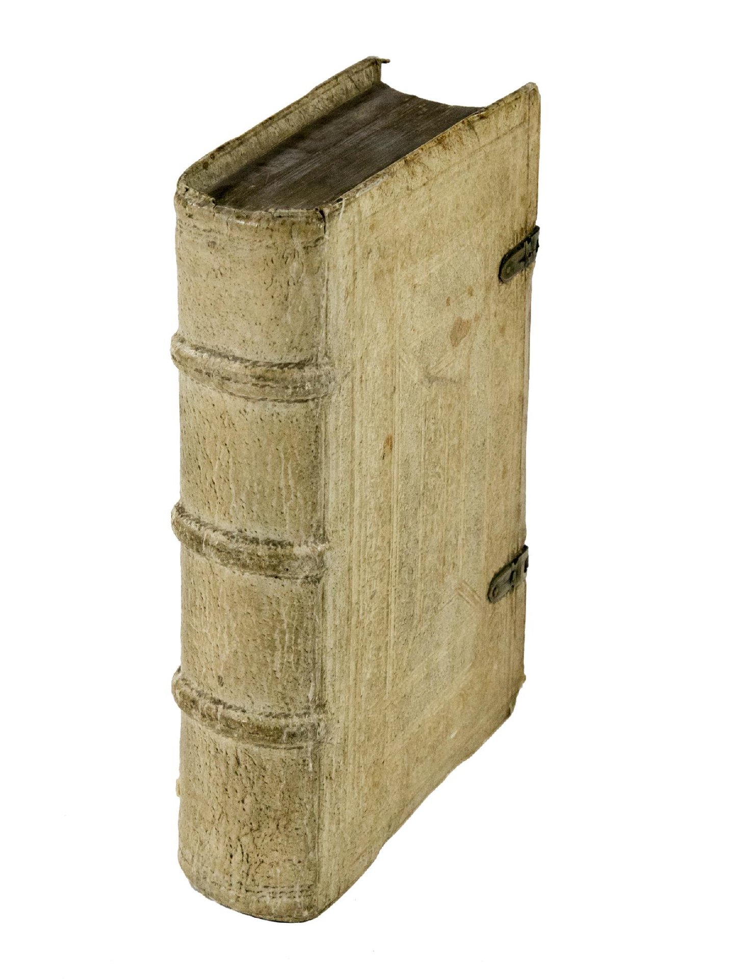 8vo. (2), 290 pp., (5) leaves. A-T8 (T8 is blank). Title and text within rulers. Contemporary blind stamped pigskin, two clasps.