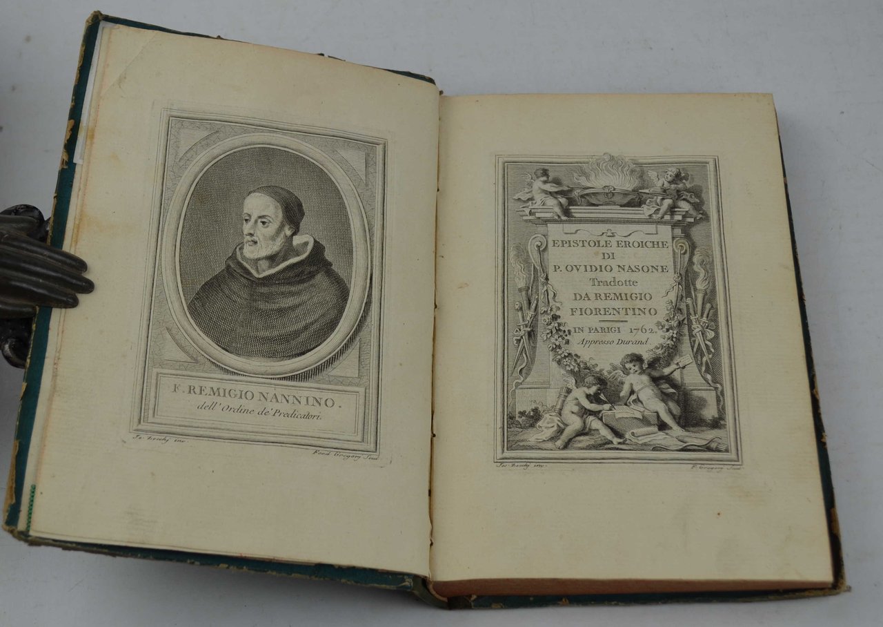 Cm. 21,5, pp. (4) xii, 323 (1). Antiporta con il ritratto di Remigio Fiorentino, frontespizio figurato, 22 belle testate e 8 finalini. Il tutto elegantemente inciso in rame da Grégori su disegni d'invenzione di Zocchi. Leg. coeva in mezza pelle, dorso liscio con titoli e fregi in oro. oro. Qualche segno d'uso esterno, peraltro esemplare genuino ed in buono stato di conservazione. Elegante e non comune edizione; la prima che presenta le figure di Zocchi, poi riprese per le successive edizioni in francese. Cfr. Cohen-Ricci p. 774.