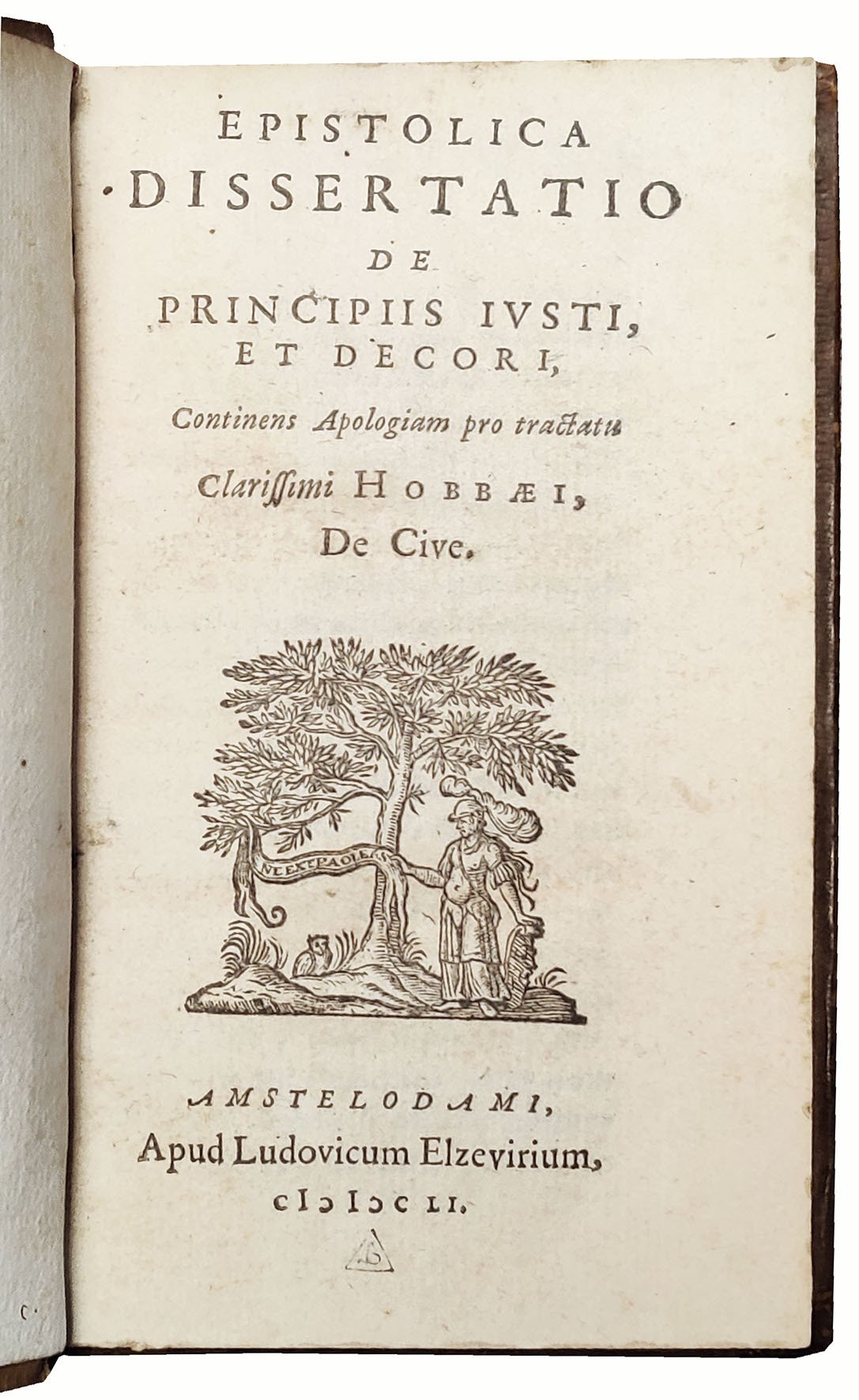 Epistolica dissertatio de principiis iusti, et decori, continens apologiam pro tractatu clarissimi Hobbaei, De cive. Amsterdam, Lowijs Elzevier, 1651 [bound with:]. [EIUSDEM]. Disputatio de finito & infinito, in qua defenditur sententia clarissimi Cartesii, de motu, spatio, & corpore