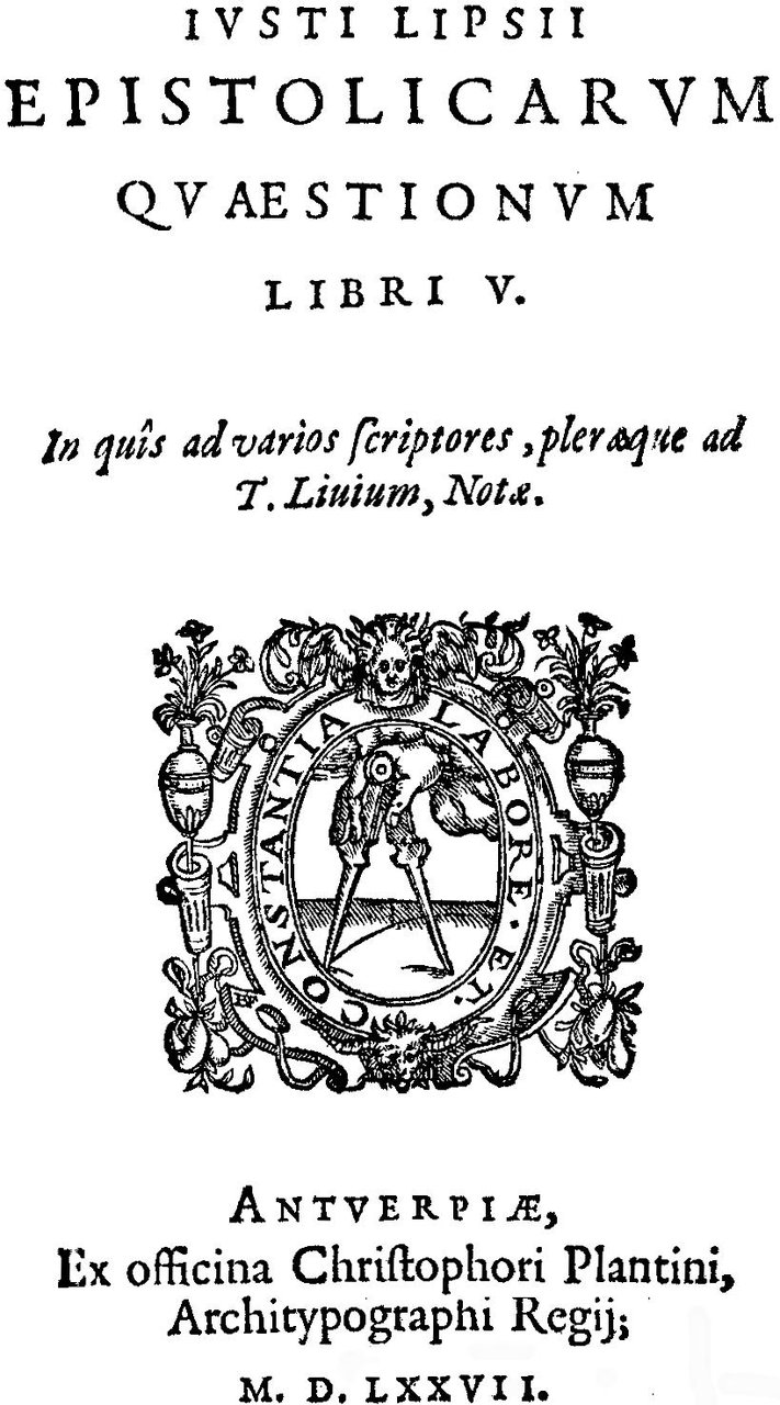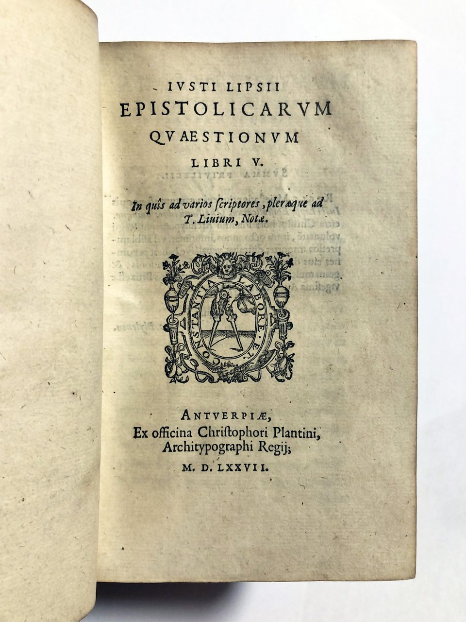 “On 10 February 1576, Plantin told Pithou that he had been invited by Lipsius to attend the latter's promotion to doctor in Louvain. At this occasion Lipsius had spoken with him about his plans for the publication of several works, including Quaestiones epistolae[...] In a letter of 1 July 1576 to Pulmannus, Lipsius himself declares he is working hard on the publication. A month later, however, he had some doubts whether, owing to the troubled time, Plantin would be able to publish his book” (L. Voet, The Plantin Press (1555-1589). A bibliography of the works printed and published by Christopher Plantin at Antwerp and Leiden, Utrecht, 1980-1983, III, p. 1382).