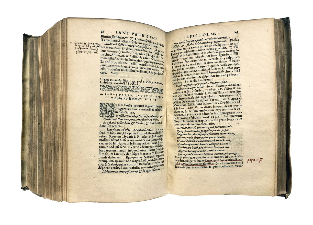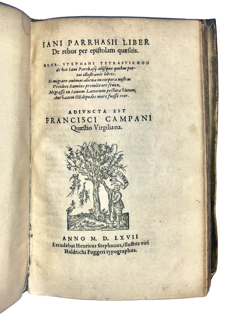 Epistolicarum quaestionum libri V. In quîs ad varios scriptores, plaeraque ad T. Livium, Notae. Antwerp, Christoph Plantin, 1577. [bound with:] Liber de rebus per epistolam quæsitis [...] adjuncta est Francisci Campani Quaestio Virgiliana. Paris, Henri Estienne, 1567