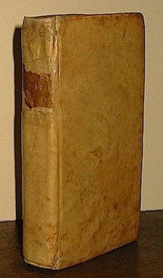 12mo (cm. 13,6), 12 pp., da c. 13 a c. 158, 10 cc.nn. Legatura ‘700 in pergamena rigida con titolo oro su tassello in pelle (con mancanze) al ds. Tagli rossi. Un piccolo restauro al ds. Scritte di antica mano al frontis. (parzialmente cancellate) e al verso dell’ultima carta. Alone al margine esterno delle prime 60 carte ca. Edizione originale, non comune.