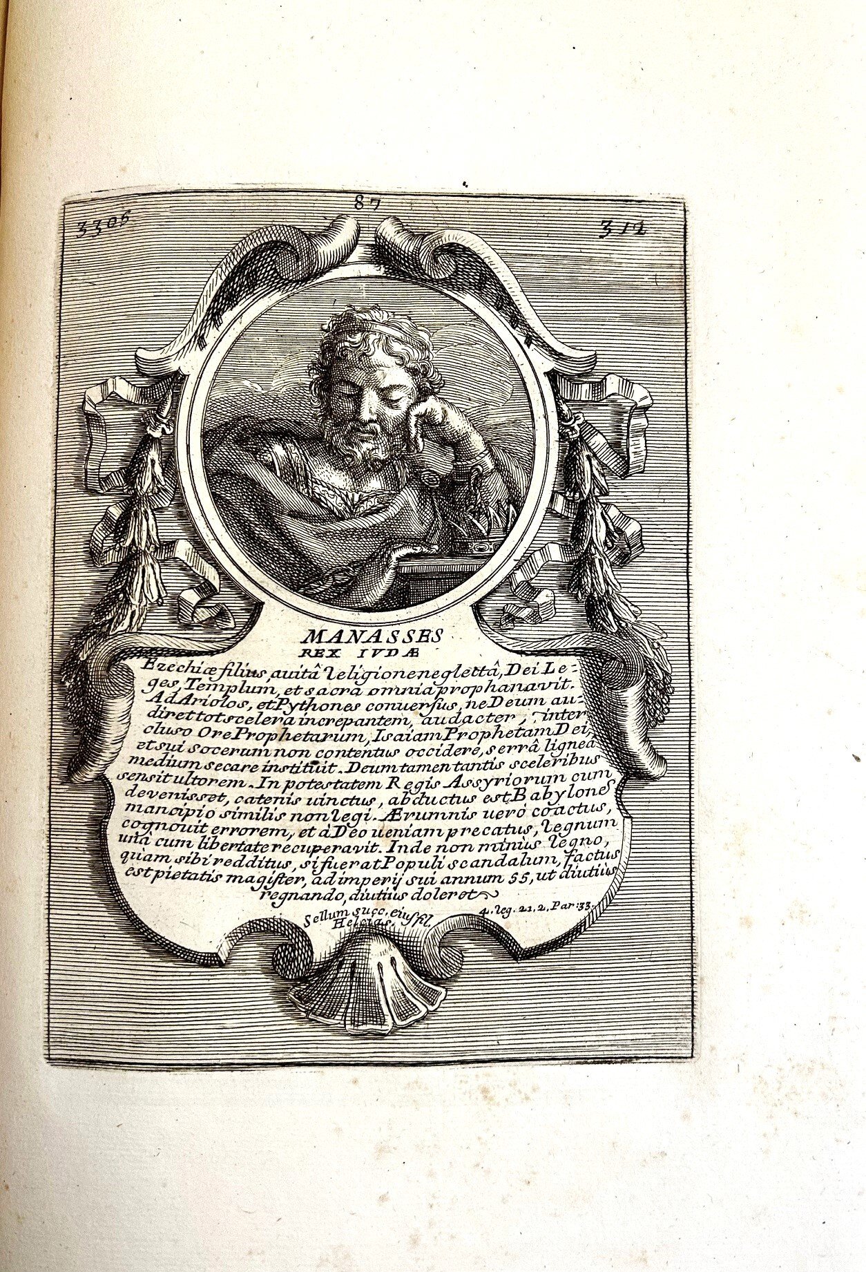 >in-folio (340x230 mm) titolo a stampa in rosso e nero, 112 tavole incise in rame, 1 foglio con Indice delle tavole. Bella e solida legatura coeva in piena pelle marmorizzata, triplice filetto oro ai piatti, titolo su tassello e ricchi fregi oro al dorso. Le 112 tavole raffigurano personaggi storici dell'Ebraismo incisi a mezzo busto, entro medaglioni variamente decorati, nella parte inferiore di ciascun ritratto è incisa la biografia del personaggio, con testo in italiano ed ebraico. Alcune fioriture sparse e piccole gore marginali. Non comune ed importante documento di storia ebraica. Bell'esemplare con ampi margini e impresso su carta forte, mancante delle 14 tavole dei Tolomei e dei 16 ritratti dei re di Babilonia, presenti in alcuni esemplari. Olschki, Choix n. 13998.