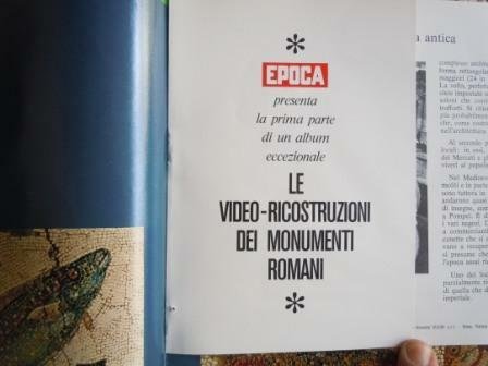 Lotto di 13 numeri: 1062-63; 1075; 1076; 1098; 1100; 1102 - 1109. Cinque fascicoli con le viedeo ricostruzioni a colori dell'antica Roma. Brossura, non rilegati. Kg 8