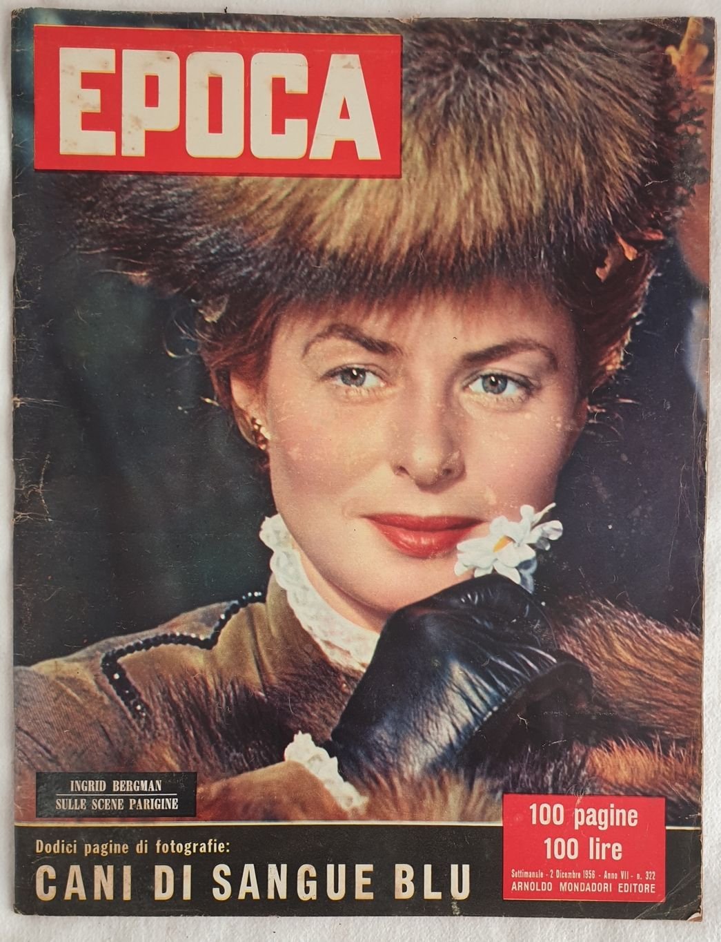 Numero del 2 dicembre 1956 della storica rivista Epoca pubblicata a Milano dal 1950 al 1997.<BR>Tra gli articoli presenti in questo numero: Caccia all'aquila, In Russia il marxismo, Nel rogo di Orly un disco di Mozart, In arrivo Charlot VII, Cani di sangue blu, Luigi Barzini in due mesi da Pechino a Parigi, La Principessa Shahnaz, Allarme a Melbourne, Cadavere ritrovato nel Tamigi, Alfredo Chighine ecc.<BR>Numerose foto in bianco e nero ed a colori all'interno. In buone condizioni. Brossura editoriale in buone condizioni generali con lievi usure ai margini e dorso. Legatura in buone condizioni. All'interno le pagine si presentano in ottime condizioni. In folio. Dim. 34x26 cm. Pp. 98. Number of the 2nd of december 1956 of the hystorical magazine Epoca published in Milan from 1950 until 1997. Inside: Eagle hunting, Marxism In Russia, a Mozart disk in the fire of Orly, Charlot VII is arriving, dogs of blue blood, Luigi Barzini in two months from Beijing to Paris, Princess Shahnaz, Alarm in Melbourne, Dead body found in Tamigi, Alfredo Chighine ecc. Different black and white photoes inside In good conditions. Editorial cover in good general conditions slightly worn in the edges and spine. Binding in good conditions. Inside pages are in very good conditions. In folio. Dim. 34x26 cm. Pp. 98.