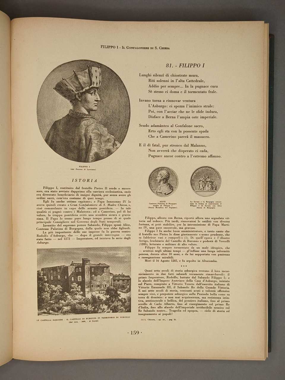Cm 38. Pp. 718. Legatura editoriale in tela, con titoli in oro al piatto e al dorso. Numerose fotografie e illustrazioni in bn n.t., iconografia sabauda dalle origini ai nostri giorni. In appendice X tavv. di albero genealogico. Volume edito in occasione delle nozze di Umberto di Savoia con Maria Josè del Belgio.