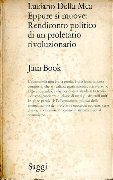 373 p. ; 23 x 14 cm. Saggi, 29. Questo è uno dei classici libri degli anni della contestazione italiana (1968-69) scritto da uno dei protagonisti, Luciano Della Mea, scrittore, giornalista e militante politico. Afferma l'autore: «L'autonomia non è una teoria, è una lenta faticosa conquista, che si realizza praticamente, attraverso le lotte e lo studio, e che per questa strada si fa teoria e diventa coscienza di classe di tuti gli sfruttati uniti. In altre parole: è l'affermazione politica della emancipazione dei proletari a opera dei proletari stessi che via via si uniscono contro il sistema e per il comunismo». Brossura editoriale, coperta in cartoncino flessibile con alette. Segni del tempo alla coperta e alle pagine interne (fioriture e ingiallimento della carta), per il resto libro integro. Codice libreria 6230.