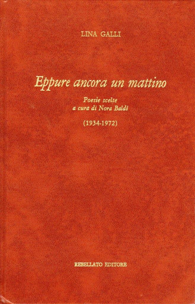 Eppure ancora un mattino, prima edizione 1973, pp. 97, formato 13 x 20.<BR>Copertina rigida di colore marrone con titoli impressi in oro al piatto anteriore e sul dorso. Volume facente parte della collana Quaderni di Poesia. Poesie scelte a cura di Nora Baldi. In prima pagina presente dedica dell'autrice. <BR>Ottime condizioni