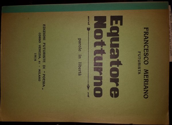 In-8 (24 cm) (4) 51 (1). Brossura editoriale. Meriano Francesco (1896-1934): poeta, scrittore futurista, giornalista. Prima edizione. Condizioni ottime.