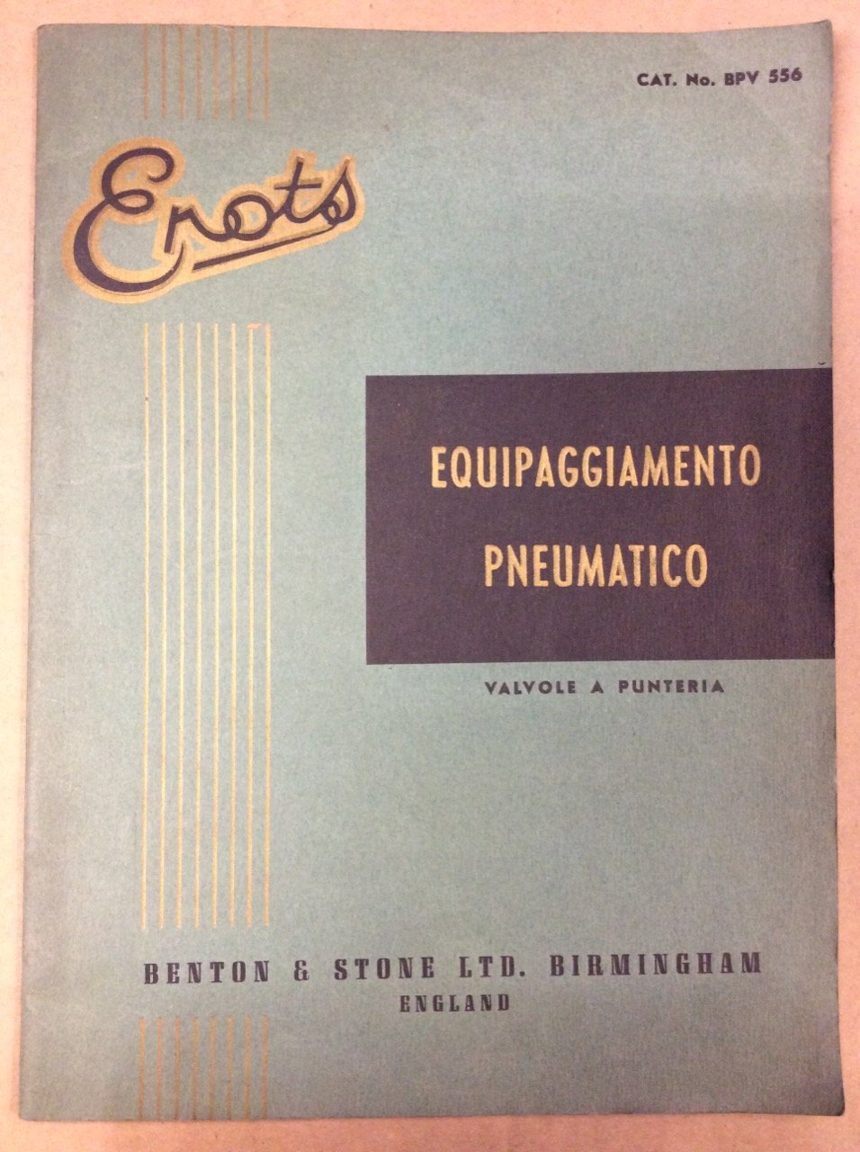 In-8, brossura, pp. 23, con numerose figure nel testo. Catalogo per l'Italia della ditta Benton & Stone. In buono stato (good copy).