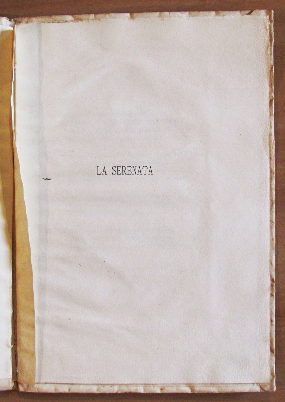I edizione per La serenata. Editore Enrico Voghera - Roma, s.d. 1894. Cartoncino editoriale muto. 17x24,5; pp.23. Raro e in Buonissimo stato. , Molto buono (Very Good)