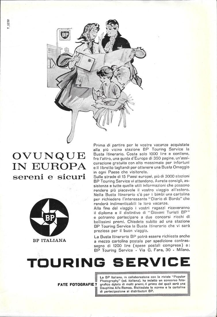 Erbaplast. Cerotto adesivo / BP Touring Service. Advertising 1961 fronte/retro