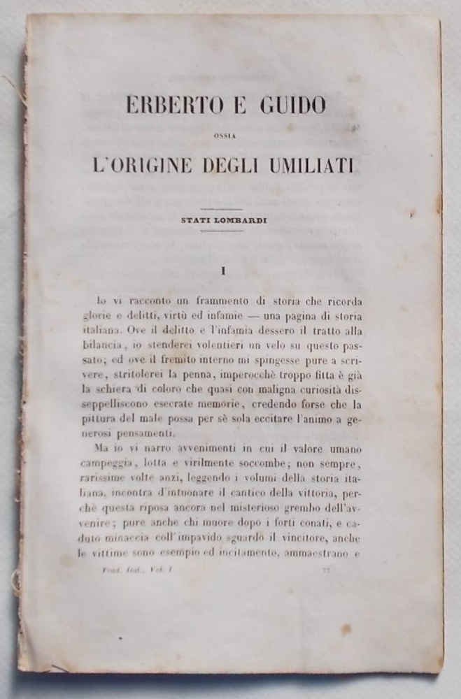Erberto e Guido ossia l'origine degli umiliati. Stati lombardi.