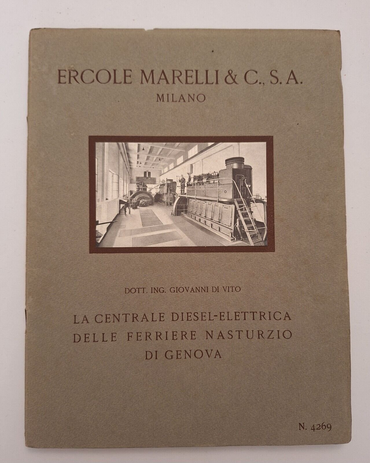 DOTT. ING. GIOVANNI DI VITOERCOLE MARELLI& C. MILANO LA CENTRALE DIESEL-ELETTRICA DELLE FERRIERE NASTURZIO DI GENOVA In 8° grande, legatura editoriale, copertina illustrata, ill. in b/n.Lievi segni alla copertina , pagine fresche e pulite.