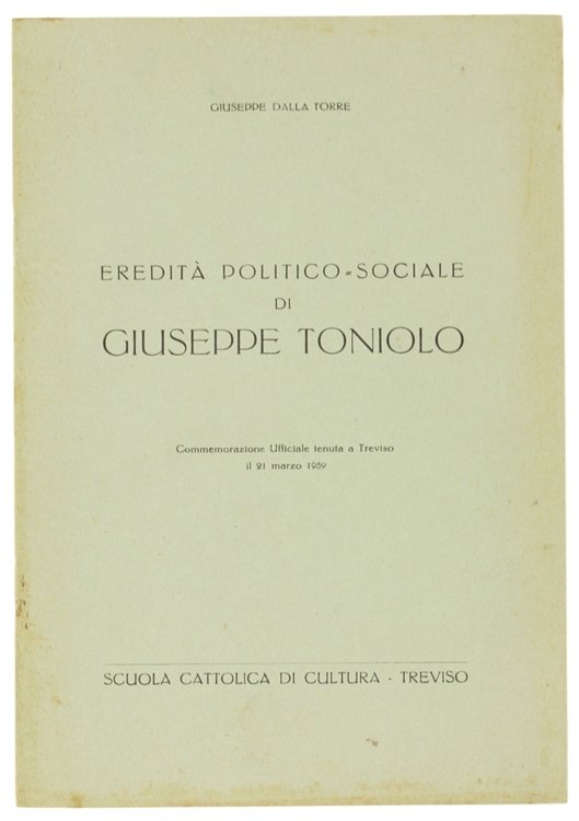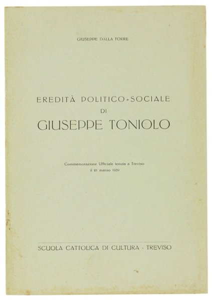 EREDITA' POLITICO-SOCIALE DI GIUSEPPE TONIOLO. Commemorazione Ufficiale tenuta a Treviso il 21 marzo 1959.