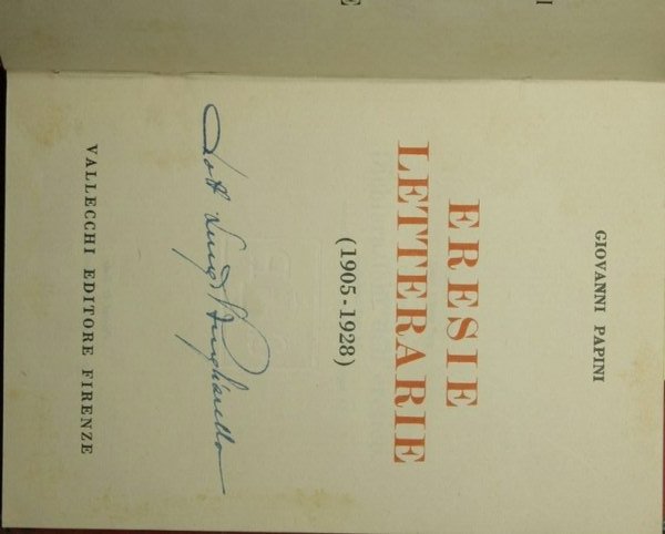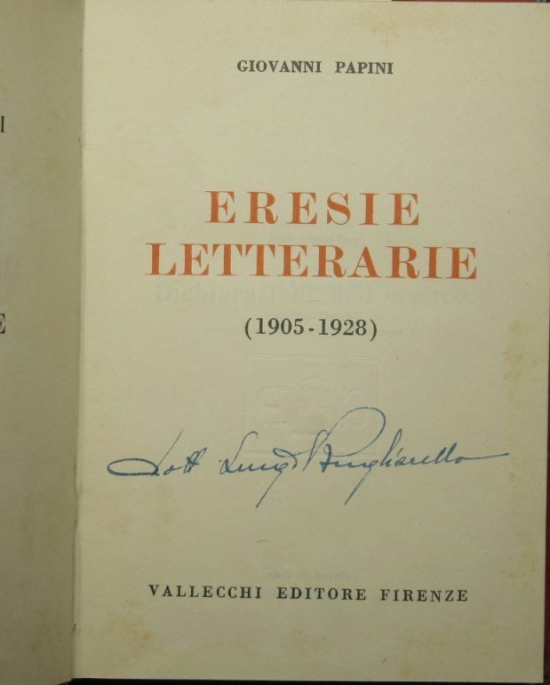 1905-1928 - Collana Opere di Giovanni Papini. N. 13 - in 16° - pp.351 - Tela con titolo in oro al dorso - Firma d'appartenenza a inchiostro al frontespizio