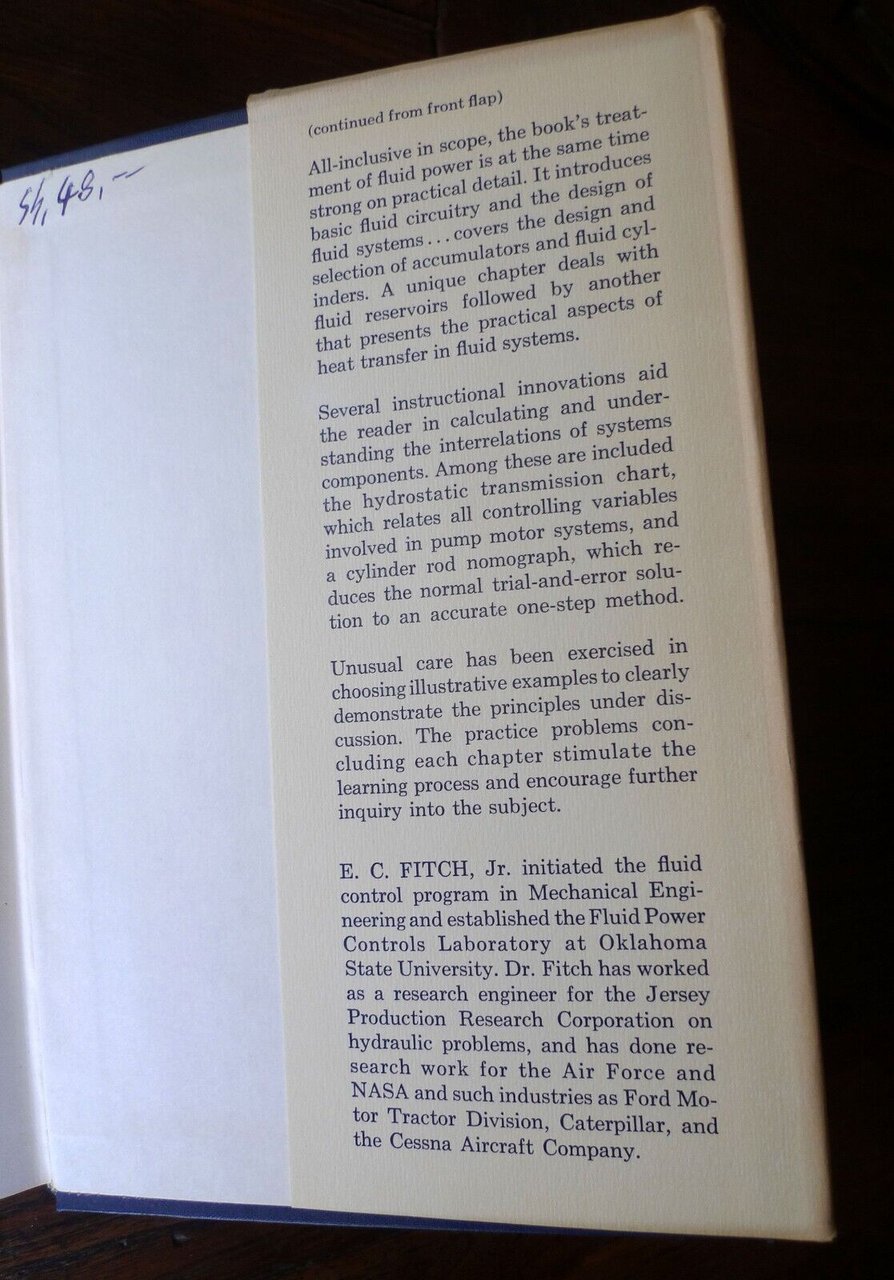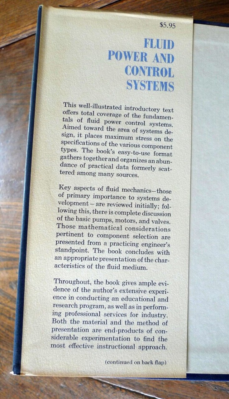 Ernest C. Fitch Jr.,FLUID POWER AND CONTROL SYSTEM.McGraw Hill, 1966,copertina rigida, rilegatura in tela,con sovraccoperta, 21x14 cm., pp.250,illustrazioni in bianco e nero,testo in inglesepeso: g.500