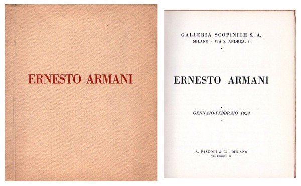 Note: In 16°, br. edit. (lievi tracce d'uso), pp. 13,(1), seguite da 10 tavv. b.n. f.t.; catalogo mostra di Ernesto Armani tenutasi alla Galleria Scopinich S. A. di Milano nel gennaio - febbraio 1929; buon es.